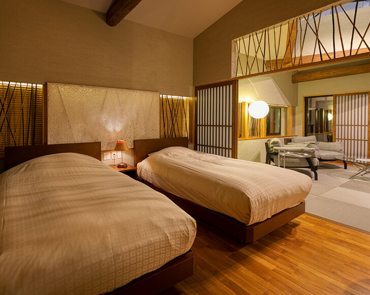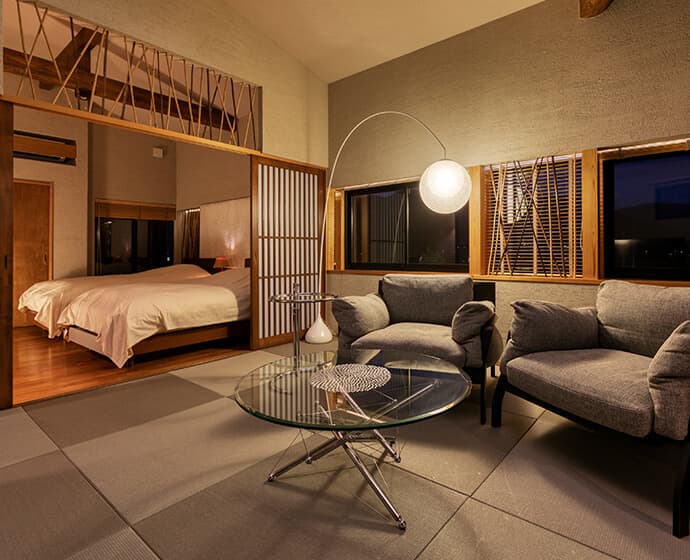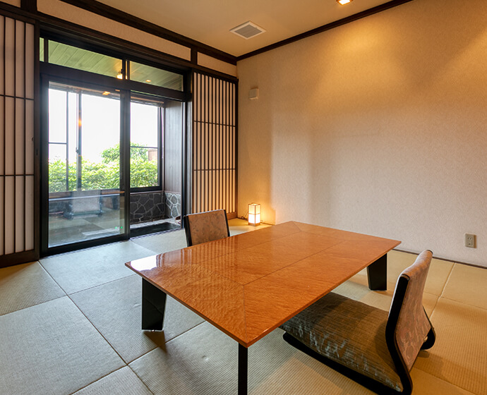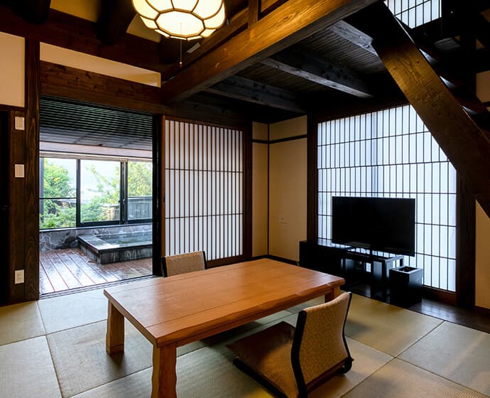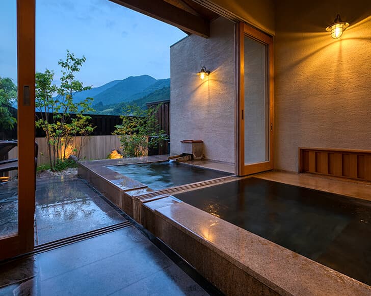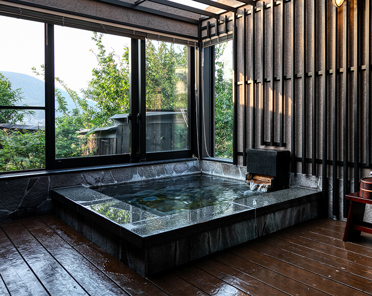 全8室のお部屋はすべて専用の湯処付きの完全プライベートな空間。